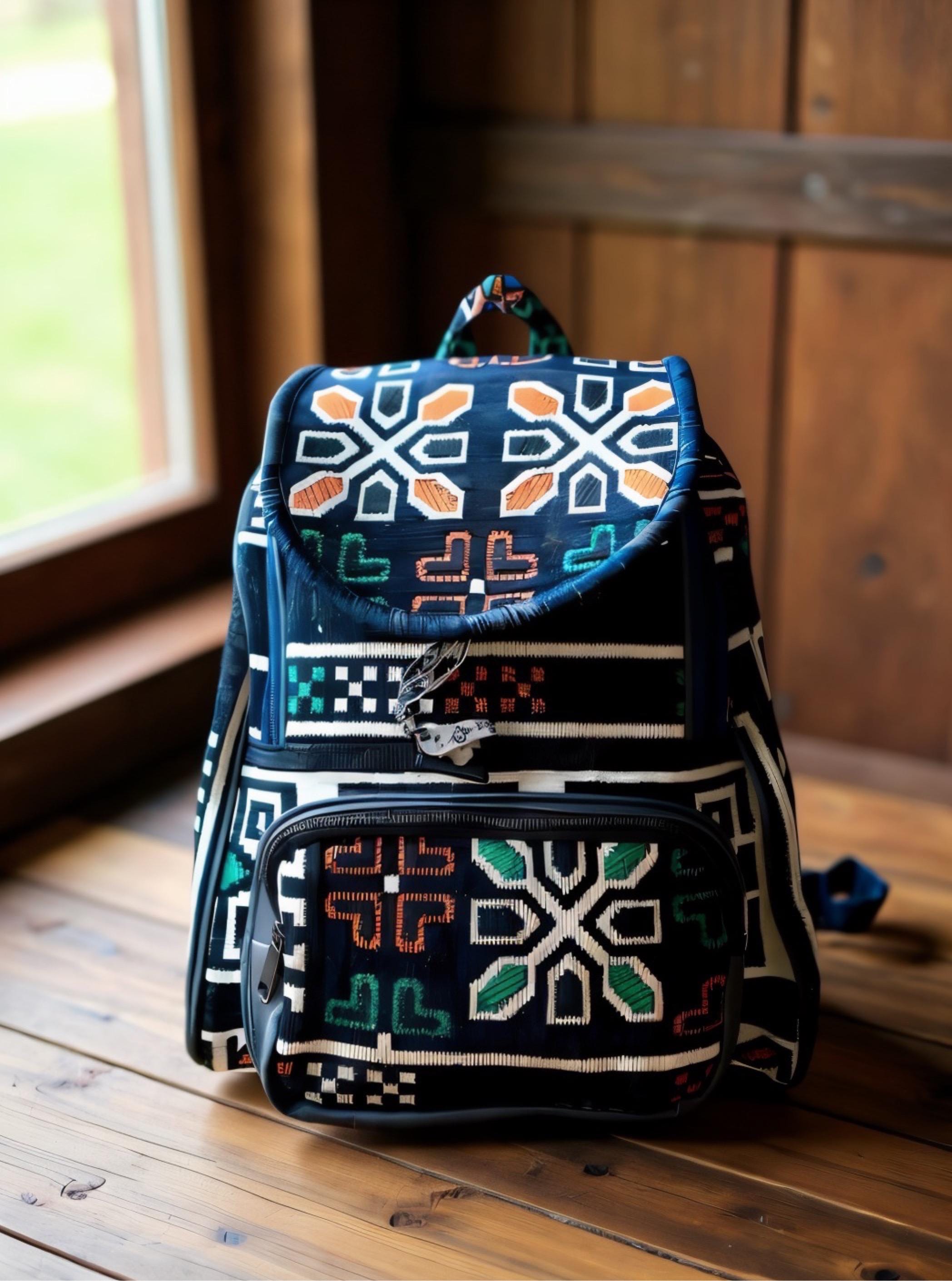 This navy blue backpack is handcrafted from authentic handwoven kilim in our local workshop, combining heritage and modern bohemian design. The ancient Anatolian cocklebur motif symbolizes prosperity, blessings, and abundance, making this bag not only stylish but also meaningful.