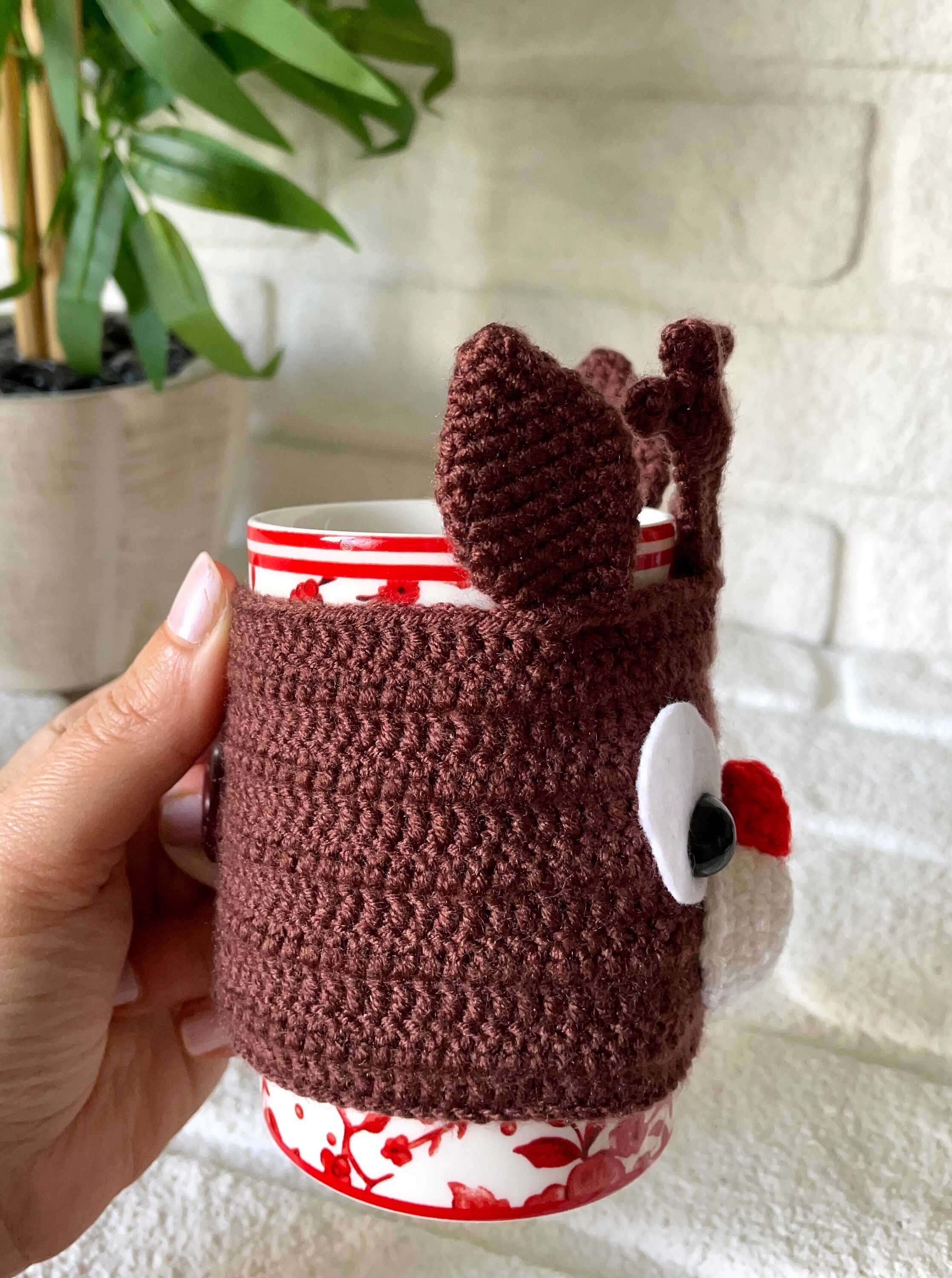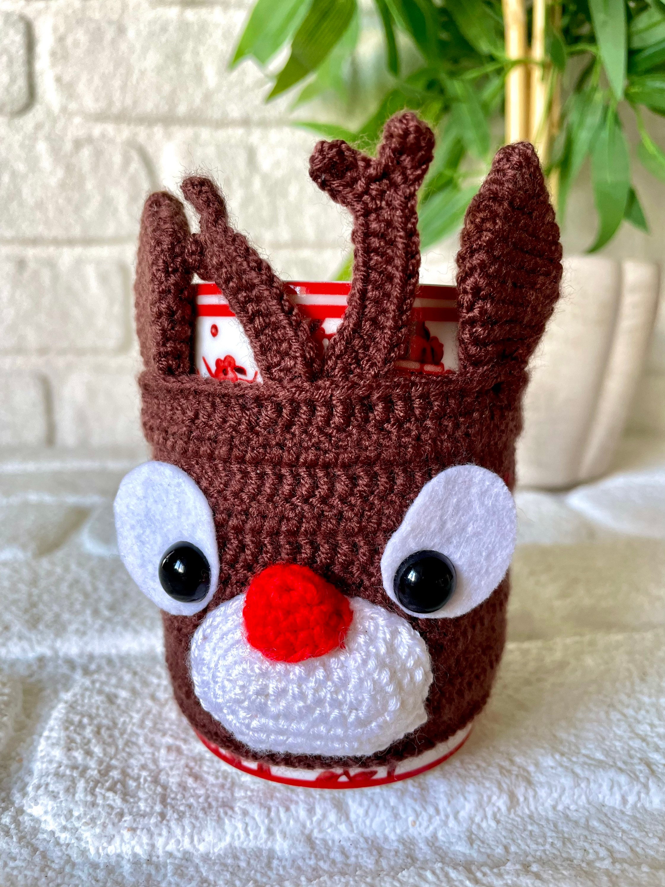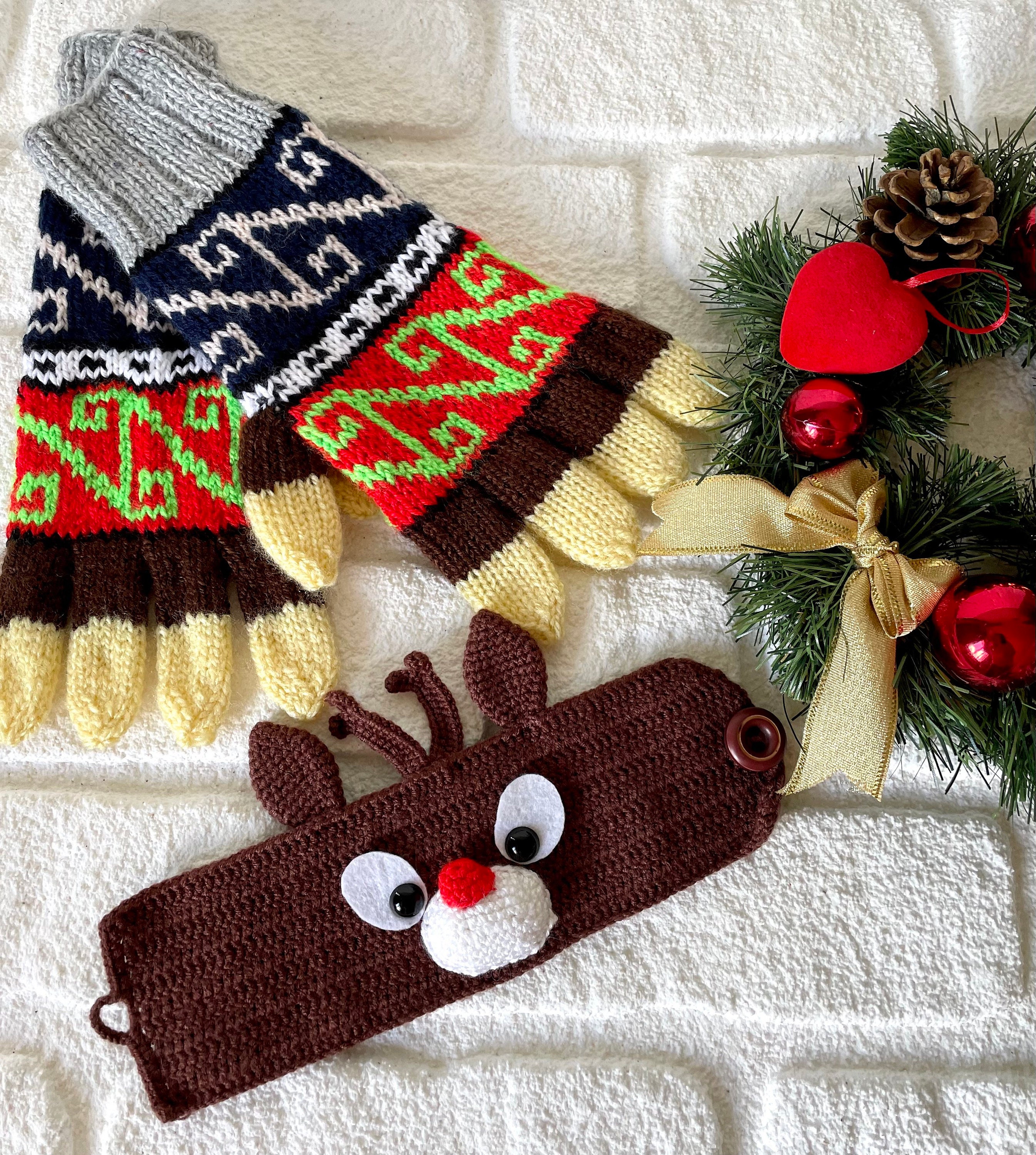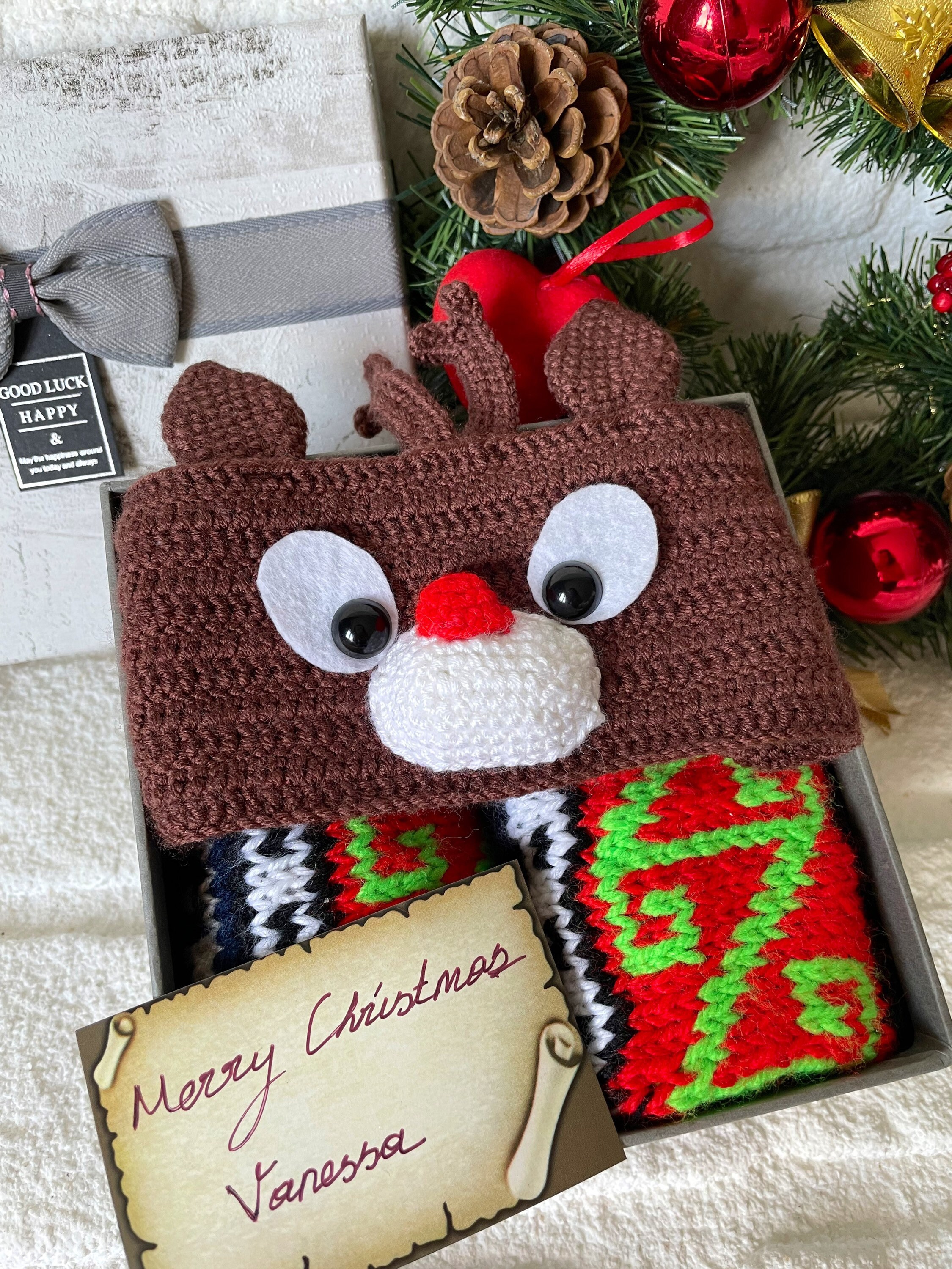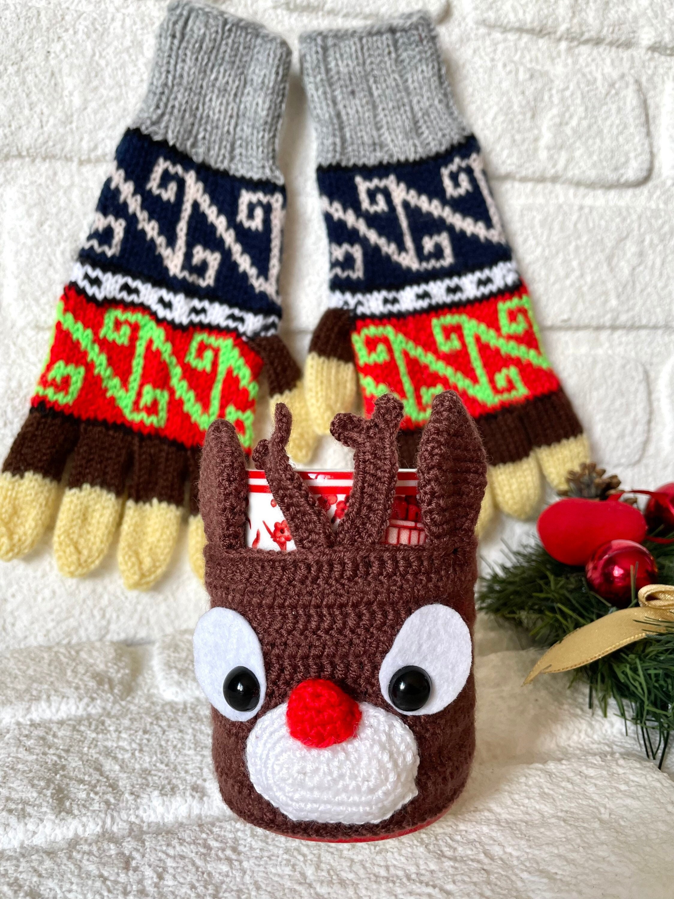 This heartwarming Christmas present arrives in an adorable little gift box, ready to delight your loved ones. I’ve hand-knitted these cozy mittens and a charming reindeer mug sweater using soft cotton yarn in a variety of colors. The snug mittens keep your hands warm and comfy, while the reindeer mug cover keeps your drink hot for longer.