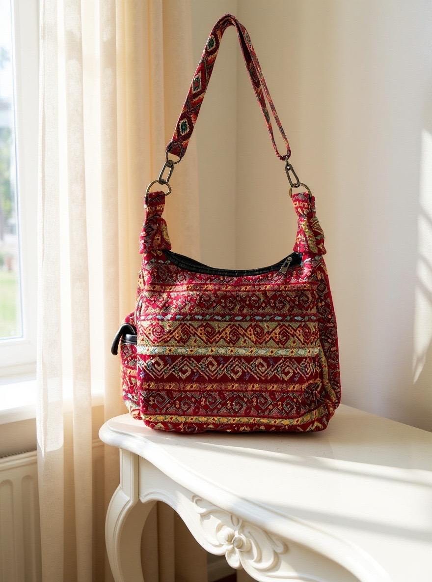 Handmade Red Guitar Strap Messenger Bag – Boho Ethnic Crossbody Purse