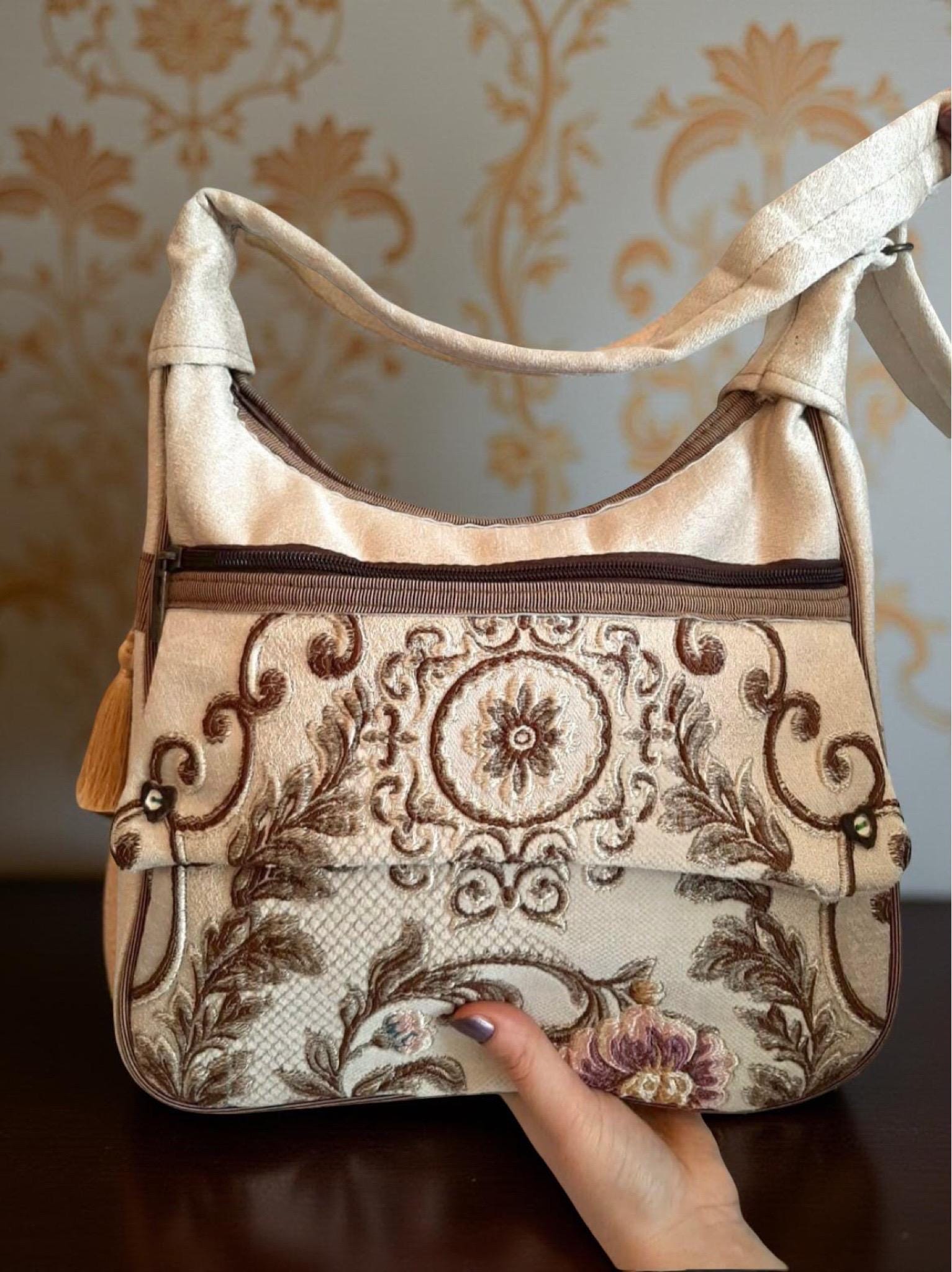 Victorian Style Unique Handmade Ivory Crossbody Shoulder Bag, 3D Floral Pattern Fabric, Personalize Birthday Gift Women, Best gift idea